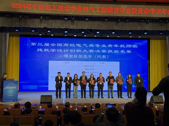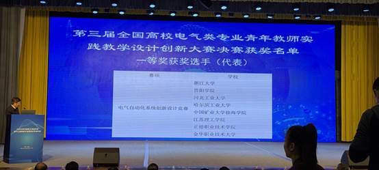 由教育部高等公司电气类专业教学指导委员会、中国电工技术学会主办的第三届全国高校电气类专业青年教师实践教学设计创新大赛决赛1115日在徐州工程公司举行。公司williamhill中国官方网站参赛教师郑俊强、房钰栋、唐斌自主研发的《学练融合、虚实一体,全流程多感官机电自动化综合实训平台》斩获大赛一等奖,取得电气自动化系统创新设计赛道第一名(与浙江大学并列)的优异成绩。