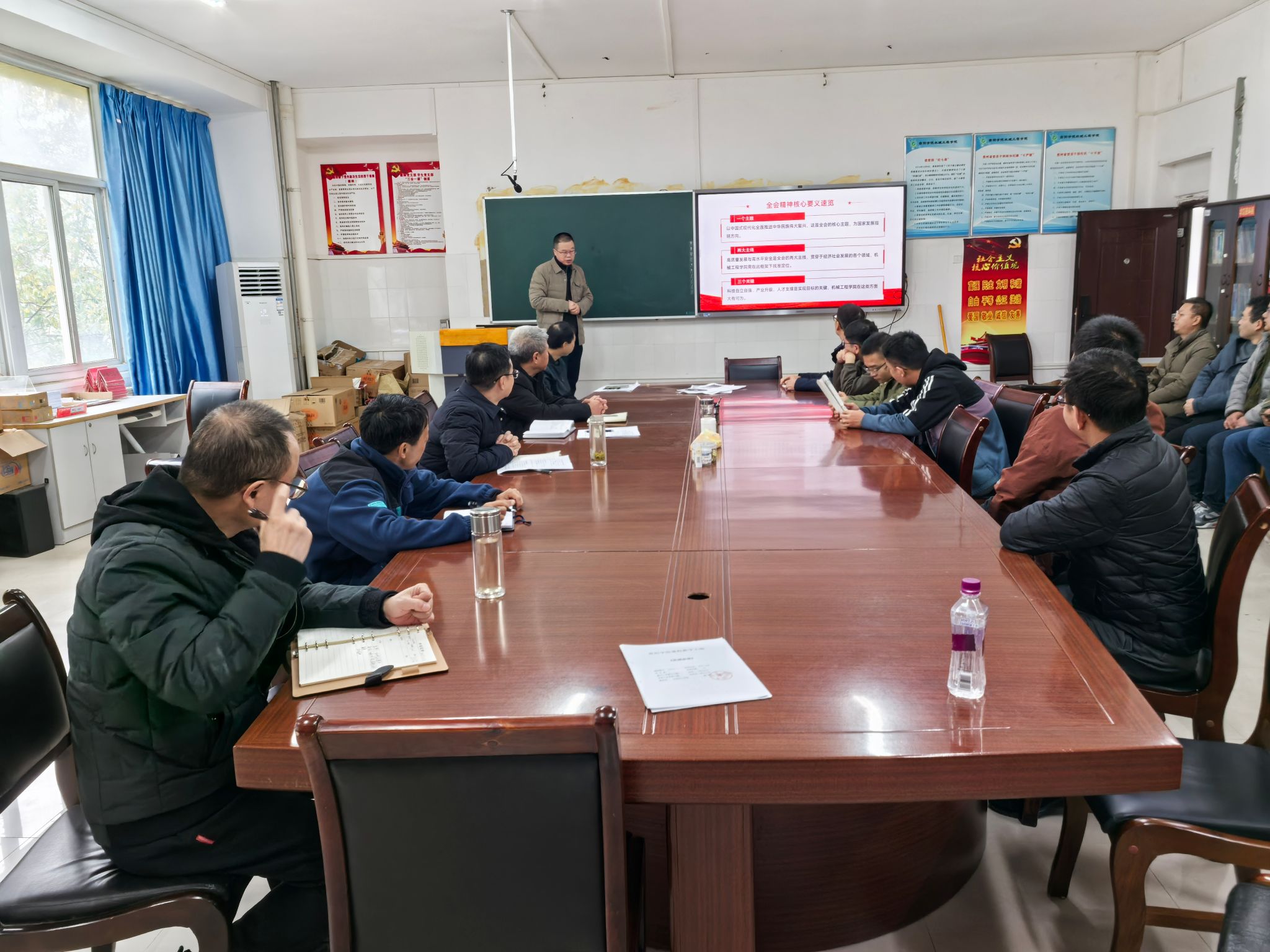 教师支部书记刘征宏从基层教学科研实践视角展开宣讲,他结合课程思政建设与科研攻关经历,分享了学习体会。他认为,全会精神与“十五五”规划对一线教师提出了更高要求,在课堂教学中融入家国情怀教育,在科研工作中聚焦实际应用问题,以党支部为堡垒,形成“党建引领教学、科研服务国家”的生动格局,让全会精神在基层教学科研岗位落地生根。