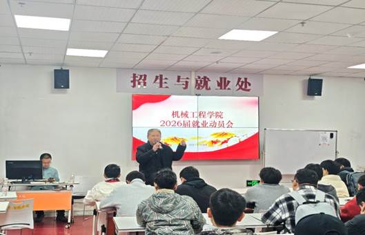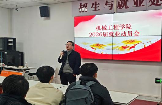 动员会上,吴家福书记会上,吴家福书记首先作就业动员讲话。他详细介绍了当前严峻的就业形势,让毕业生们对就业大环境有了清晰认知。同时,吴书记逐一讲解了公司和公司为促进就业所采取的一系列措施,为毕业生就业注入信心。针对公司员工大多来自普通家庭的背景,他鼓励同学们要有长远的职业规划,将个人就业与家庭脱贫致富紧密结合起来,肩负起家庭责任。在就业方向选择上,吴书记提醒毕业生要立足实际,不要盲目扎堆考公考编,应充分结合机械工程专业优势,积极选择适合自己的行业和职业;并着重强调要把握应届生校园招聘的黄金时间,找到合适企业后及时签订就业材料,避免错失良机。